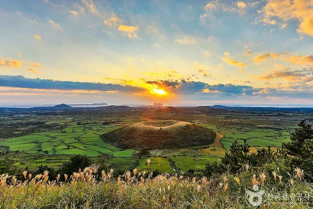 제주 동쪽에 위치한 다랑쉬오름은 부드러운 곡선의 능선이 매력적인 봄철 산책 코스입니다. 흙길과 들풀이 있어 초록빛 자연을 그대로 만끽할 수 있습니다.