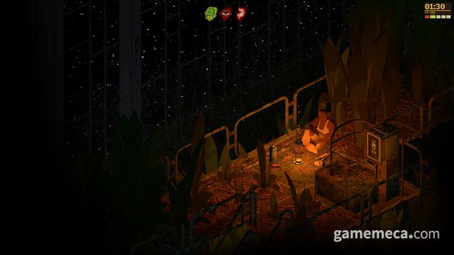 생존을 위헤서는 허기, 갈증, 수면 외에도 편안함과 행복을 꾸준히 관리해야 한다. 이를 위해 다양한 곳에 휴식처를 마련해야 한다. 아울러 우주선 내에는 식물 모양의 괴물이 돌아다니고, 이끼, 풀이 무성하다. 최대한 식물이 없는 구역에 자리를 잡고 생존을 도모해야 한다.