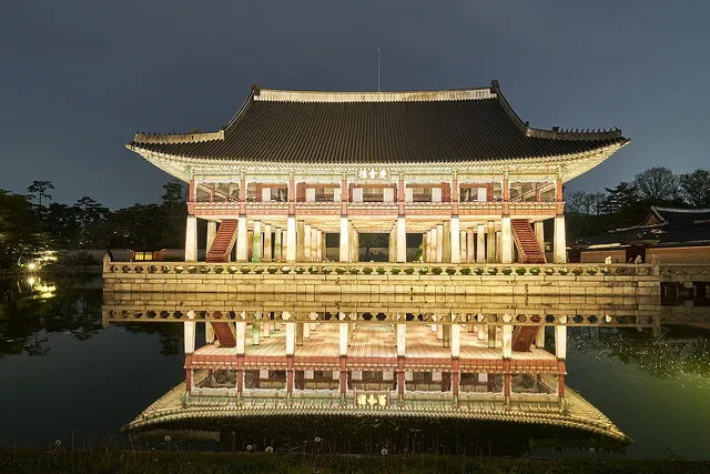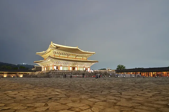 경복궁은 조선의 법궁으로 웅장함을 자랑합니다. 밤에는 조명이 비치며 더욱 로맨틱한 분위기를 더합니다.