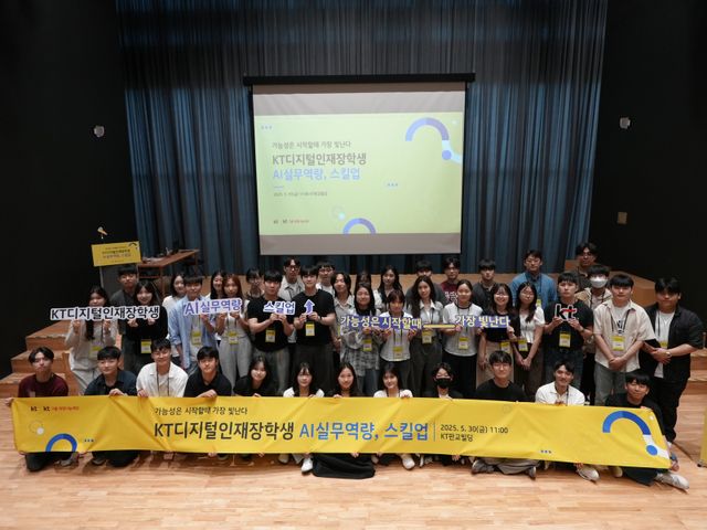 KT는 지난달 30일 KT디지털인재장학생을 대상으로 IT와 AI 이론을 기업 실무에 적용하는 방법을 교육하는 'AI실무역량, 스킬업' 프로그램을 진행했다고 1일 밝혔다.