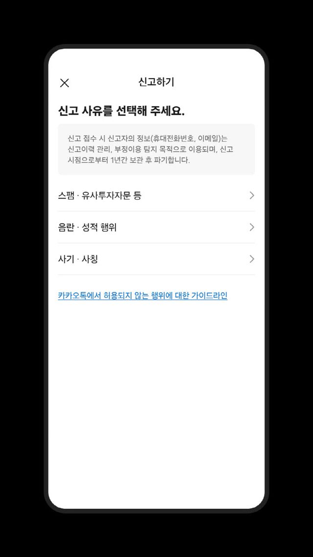 카카오는 운영규정 개정에 맞춰 신고 기능을 기존보다 강화했다. 이용자는 일반채팅, 오픈채팅, 팀채팅, 카카오톡 채널 등에서 문제가 되는 메시지·콘텐츠를 신고할 수 있으며, 이는 약관 위반 여부 판단에 활용된다.