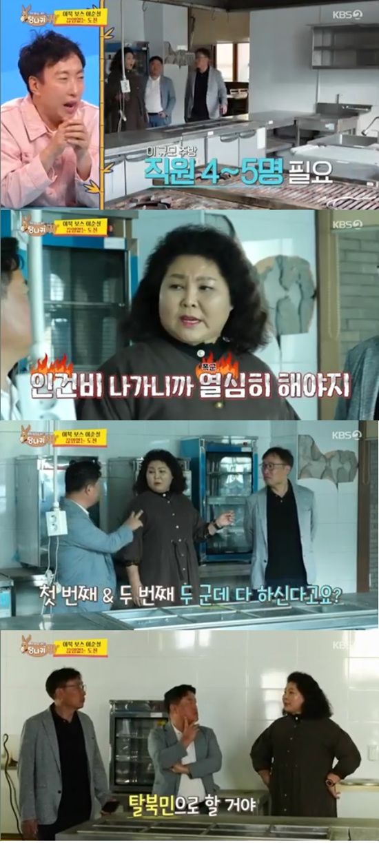 이순실은 장이사는 직원들을 어떻게 다 채용할 거냐고 걱정하자 "탈북민들 일자리 창출해야지. 내가 다 뽑아놨다"고 했다.
