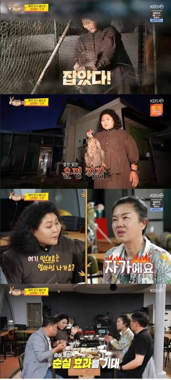 사장님은 자신은 닭을 못 잡는다면서 손님인 이순실에게 닭을 잡아주면 맛있게 요리해주겠다고 말했다.