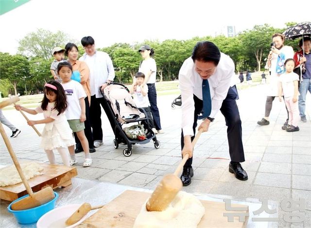최대호 안양시장이 5월 31일 평촌중앙공원 안양단오제에서 시민들과 함께 전통문화를 체험했다/사진=안양시