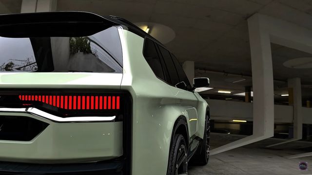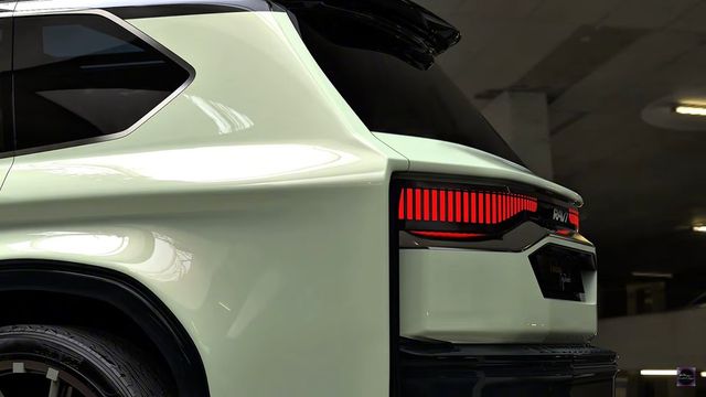 측면은 도어 핸들과 오목하게 들어간 대형 블랙 휠이 고급스러움을 강조하며, 실내는 가죽 소재와 미니멀한 디자인으로 마감됐다. 후면은 RAV4의 테일램프 디자인을 대형 SUV에 맞게 확장한 모습이다.