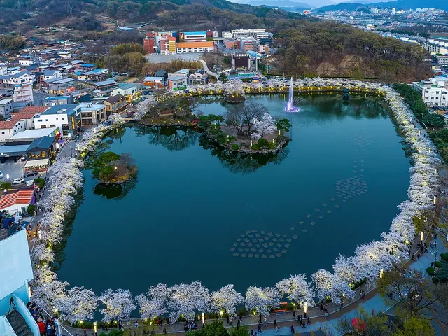 연화지는 조선시대 농업용 저수지로 시작되어 현재까지 그 맑은 물결을 지켜오고 있습니다. 연못 주위를 둘러싼 산책로는 계절마다 각기 다른 매력을 뽐내지만, 특히 봄에는 벚꽃으로 가득 찬 터널을 자아내어 환상적이며, 축제가 개최되지 않더라도 벚꽃은 매년 어김없이 환하게 피어납니다.
