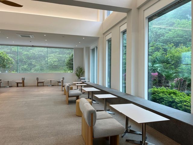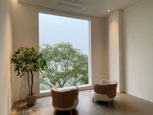 - 대형 통유리창을 통해 자연의 경관이 드러나, 마치 숲 속에 있는 듯한 평안함을 느낄 수 있습니다.