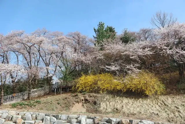 강릉 교동에 위치한 화부산은 도심 속 벚꽃을 감상하기 좋은 장소입니다. 전망대에 오르면 동해와 시내를 한눈에 바라볼 수 있어 더욱 특별합니다. 벚꽃길을 느긋하게 걸으며, 바람에 흩날리는 꽃잎을 감상하면 봄의 정취를 만끽할 수 있습니다.