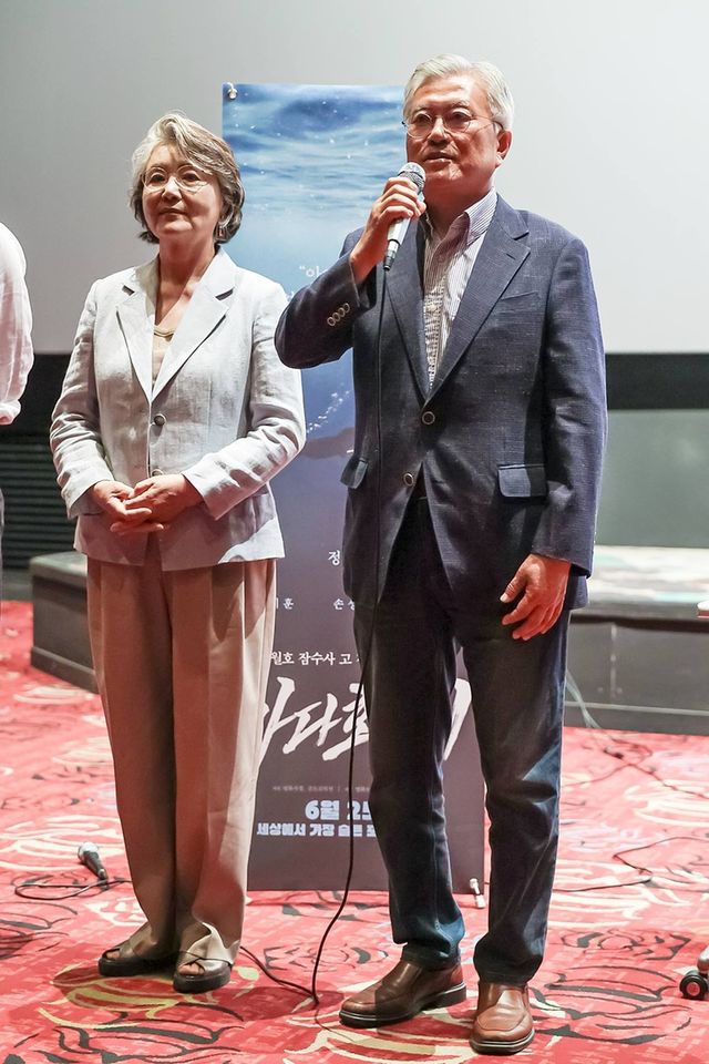 문재인 전 대통령 부부가 지난달 31일 부산에서 열린 영화 '바다호랑이' 상영회에 참석했다고 배급사 영화로운형제가 2일 밝혔다.