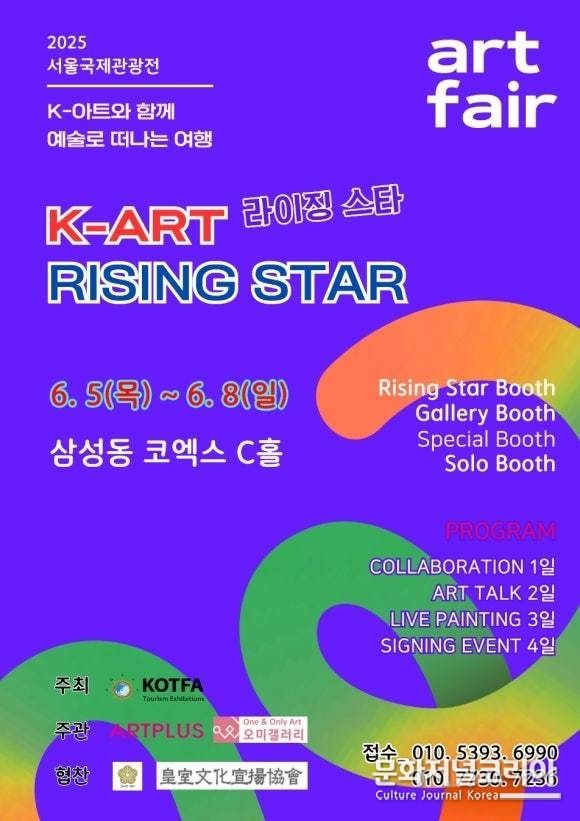 문화저널코리아 김영일 기자 | 한국 현대미술의 새로운 지평을 여는 ‘K-ART Rising Star 2025’ 특별전이 오는 6월 5일(목)부터 8일(일)까지 서울 삼성동 코엑스 C홀에서 개최된다.