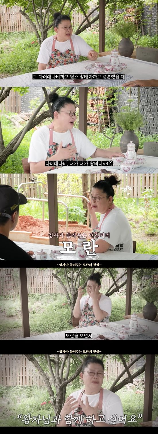 이영자는 "저게 '모란'이다. '모란'에는 슬픈 전설이 있다. '모란'이 원래 중국에서 왕족들이 너무 좋아한다. 저게 부귀를 상징한다. 슬픈 전설이 뭐냐면, 옛날에 왕자와 공주가 있었는데 너무 사랑해서 결혼하기로 했다"며 이야기를 시작했다.