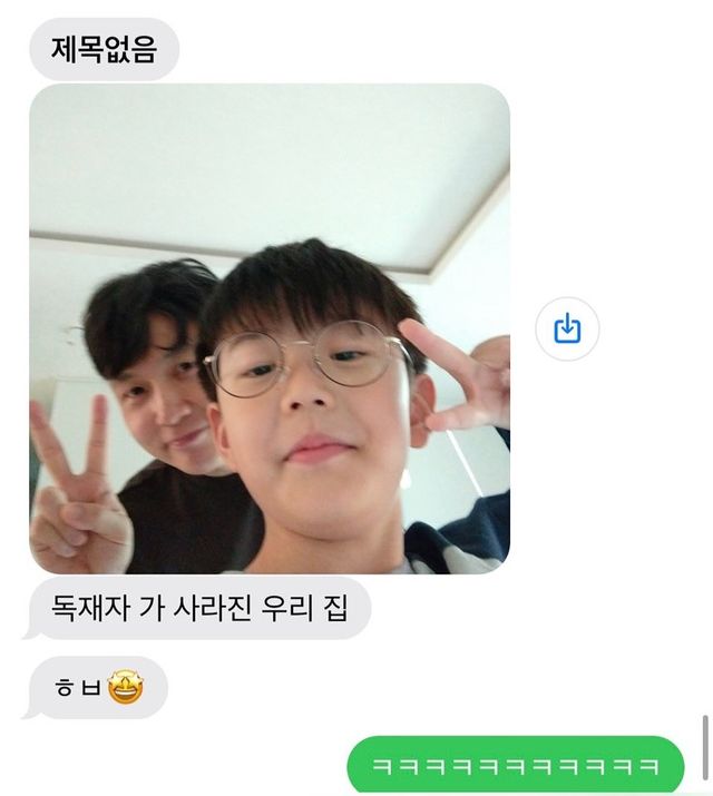 사진 속에는 문지애와 아들이 나눈 문자 캡처본이 담겨 있다. 사진에는 아들 범민 군과 남편 전종환이 웃으며 '브이' 포즈를 하고 있다. '독재자가 사라진 우리집'이라는 멘트가 웃음을 자아낸다.