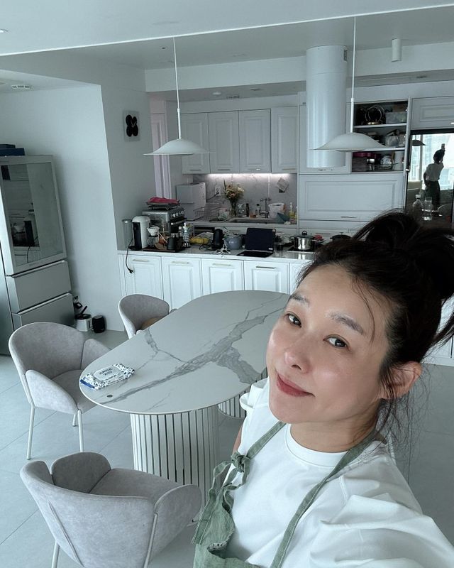 공개된 사진 속 현영은 앞치마를 착용한 채 민낯으로 카메라를 응시하며 환한 미소를 짓고 있다. 하얗고 모던한 인테리어의 주방과 거실, 널찍한 식탁, 수납장 위의 각종 조리도구 등이 눈길을 끈다.