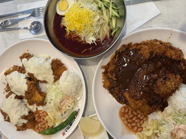 - 정통 경양식 스타일로 밥, 샐러드, 스프가 한 상 가득 제공되어 가성비가 뛰어납니다!