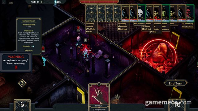게임의 목표는 28일 동안 생존하는 것입니다. 특히 마지막 날에는 퇴마를 업으로 하는 강력한 집단 ‘스톤메이슨’이 진군합니다. 심장을 발견해도 도망치지 않고 오히려 매 턴 큰 피해를 입히며, 방을 두 칸씩 이동해 간담을 서늘하게 만들죠. 심지어 이들의 대장은 높은 이성과 체력을 보유한 만큼, 최대한 빠른 시간 내에 이들을 저지해야 합니다.