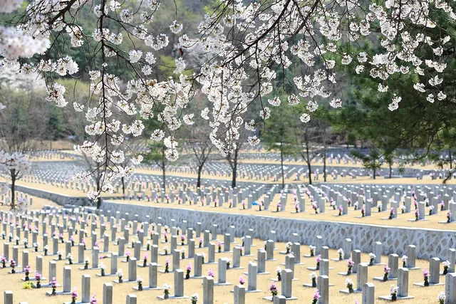 수양벚나무가 독특한 풍경을 만드는 국립현충원은 서울의 주요 추모 공간이며 동시에 봄철 명소입니다. 벚나무의 가지가 아래로 늘어져 고즈넉한 풍경을 자아냅니다.