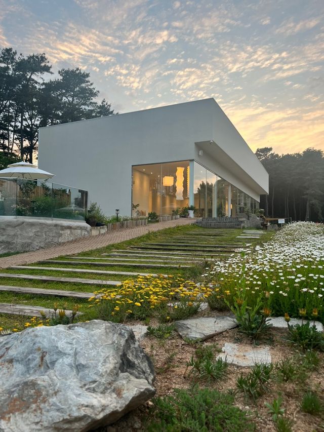 현덕면에 있는 아르카북스는 자연 속에 자리 잡은 예약제 북카페입니다. 하얀 목조 건물에서 정원과 들판을 바라보며 여유롭게 책을 읽을 수 있습니다. 무더운 일상 속에서 잠시 벗어나고픈 분들에게 추천할 만한 곳입니다.