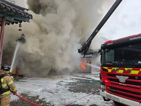 뉴시스 보도에 따르면, 세종소방본부에 따르면 이 절 신도가 "절에서 연기가 나면서 불이 났다"고 신고했다.