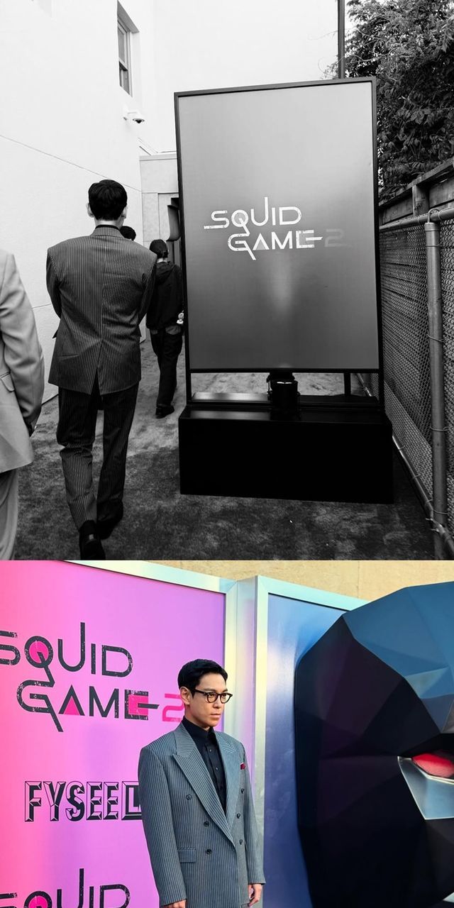 공개된 사진 속 최승현은 정장을 갖춰입고 변함없는 미모를 뽐내는가 하면 '오징어게임2' 세트장을 본따 만든 장소에서 포즈를 취해 눈길을 끈다.