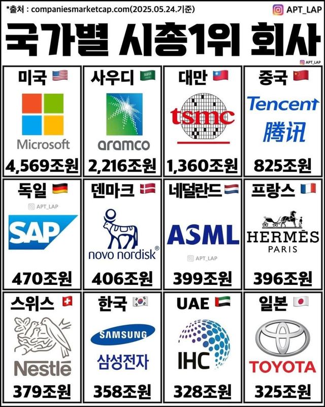 시총 1위 빼고 전부 제외하면 우리나라는 삼성전자가 있어서 10위