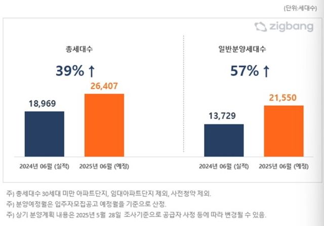 한편 6월 아파트 분양 예정 물량은 2만6407세대다. 이는 전년실적(1만8969세대)대비 39% 증가한 수준이다. 이중 일반분양은 약 2만1550세대로 추정된다.