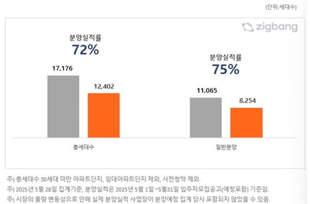2025년 5월 분양계획 대비 분양 실적 비교. © 직방