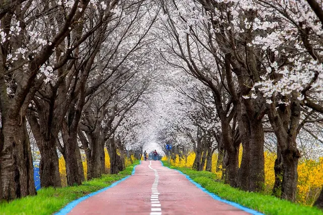 보은군 보청천을 따라 줄지어 선 수령 20~30년 된 벚나무 4천300여 그루는 분홍빛 터널을 형성하며 길게 이어집니다. 마치 분홍 구름 속을 걷는 듯한 경험을 제공하죠. 이곳은 자동차가 다닐 수 없으므로 방문객들은 걸어서 또는 자전거로 벚꽃을 자유롭게 즐길 수 있습니다. 특히 자연과 함께하는 힐링을 찾는 사람들에게 최적의 장소입니다.
