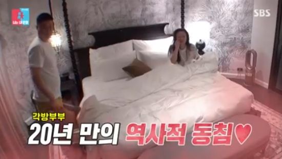 그리고 이들은 야시장 투어를 마치고 호텔로 왔다. 두 사람의 생애 첫 호텔에서 이들은 20년만에 동침을 하게 됐다. 남편의 코골이 때문에 각자 잠을 잤다는 김미령은 "오랫동안 같이 안 자면 되게 어색하다"고 했다.