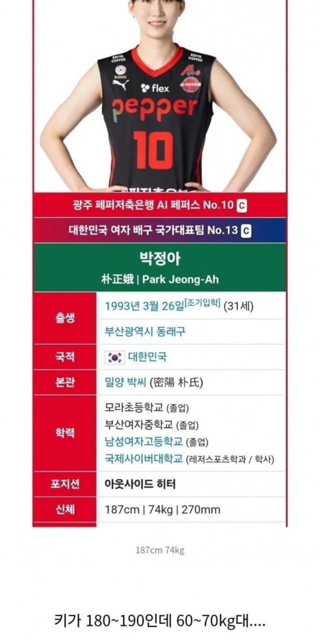 의외라는 여자 배구 선수들 몸무게
