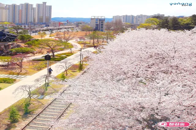 옛 철길을 자연 친화적인 산책로로 탈바꿈시킨 철길숲은 포항의 추억이 깃든 장소입니다. 기차가 다니지 않으며, 철길을 따라 놓인 벤치와 조형물들이 독특한 분위기를 더합니다. 봄철에는 벚꽃과 진달래가 만개하여 주변이 몽환적인 핑크빛 풍경으로 변합니다.
