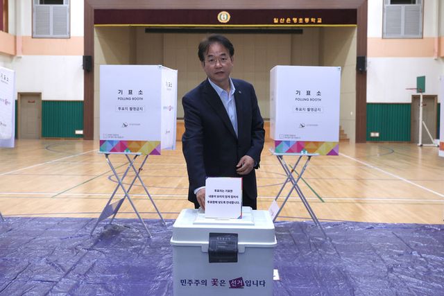 이동환 고양특례시장이 3일 식사동 일산은행초등학교에 마련된 투표소를 찾아 제21대 대통령선거 투표에 참여했다.