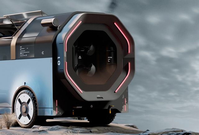 차량 후면은 외부로 확장되는 구조로, 필요할 경우 실내 공간을 넓힐 수 있다. 확장된 부분은 지면에서 살짝 떠 있는 듯한 형태로 펼쳐지며, 일반적인 확장형 캠핑카보다 훨씬 과감한 설계다.