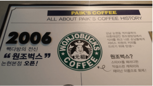 결국 스벅에게 철퇴맞고 이 로고는 역사속으로 사라졌지만 이후 빽다방으로 바뀐매장에선
