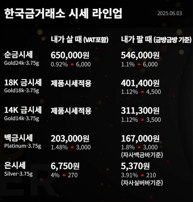 순금(24K) : 매입가 65만 원 / 매도가 54만 6000원