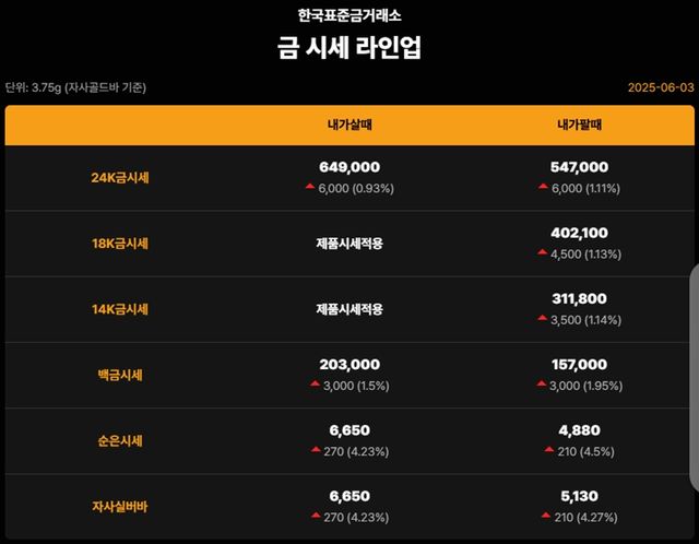 순금(24K) : 매입가 64만 4000원 / 매도가 55만 2000원