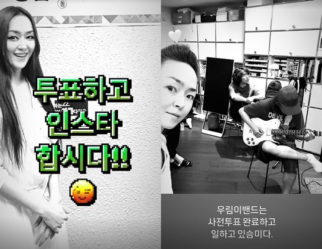 그룹 자우림의 김윤아는 흑백으로 전환한 투표 인증사진과 함께 "투표하고 SNS합시다"라는 강렬한 메시지를 남겼다. 이어 연습실 사진 역시 흑백으로 올리며 "(자)우림이밴드는 사전투표 완료하고 열심히 일하고 있습니다"라고 설명했다.