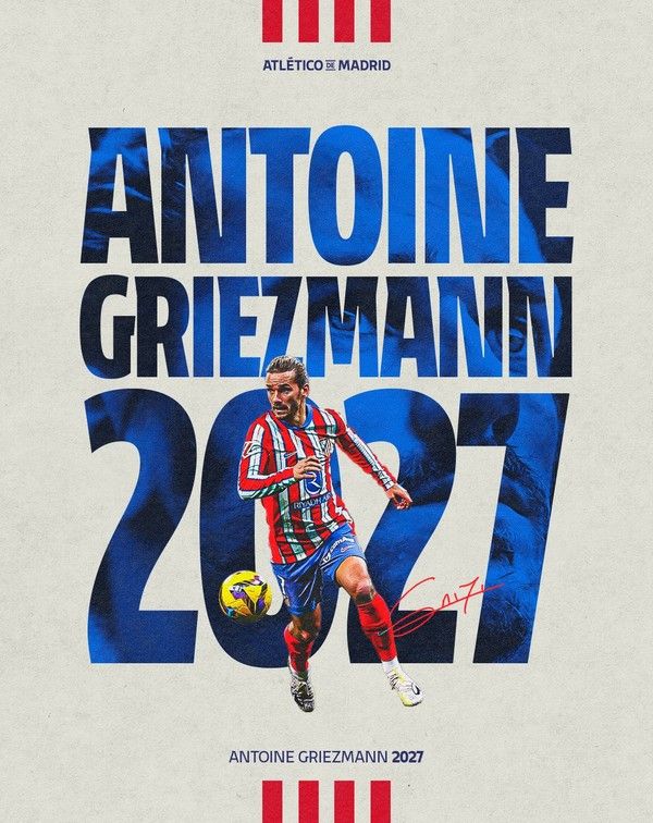 2일(한국시간) 아틀레티코는 공식 홈페이지를 통해 “구단 역대 최다 득점자인 그리즈만은 2026년까지이던 기존 계약을 한 시즌 더 연장했다. 아틀레티코와 2027년 6월 30일까지 계약 연장에 합의했다”라고 발표했다.