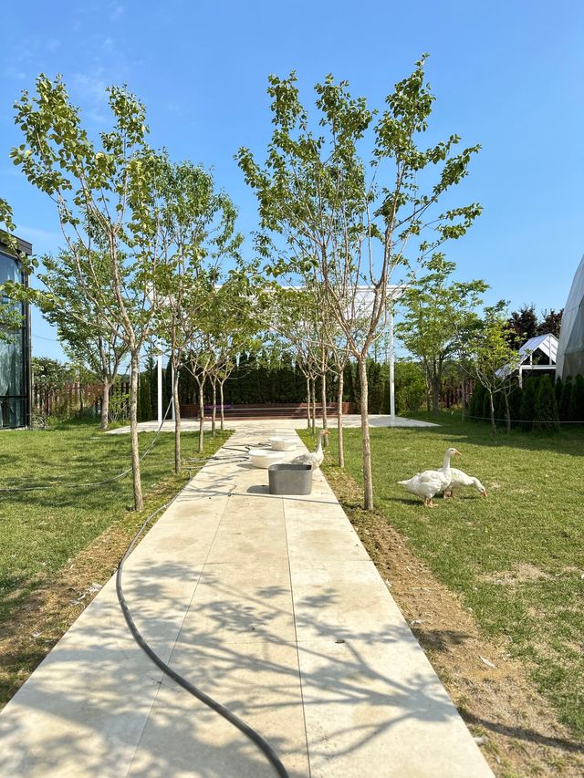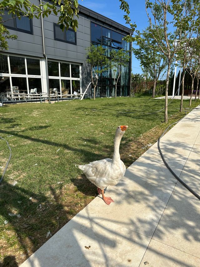 정원 한편에서는 자유롭게 돌아다니는 거위 가족을 볼 수 있습니다. 아이들에게는 도심에서 쉽게 접할 수 없는 자연 속 경험을 선사해줍니다. 거위를 가까이서 보며 사진을 찍고, 자연의 생생한 모습을 느껴보세요.