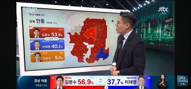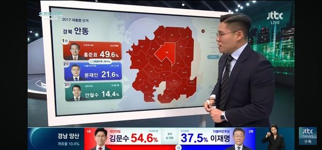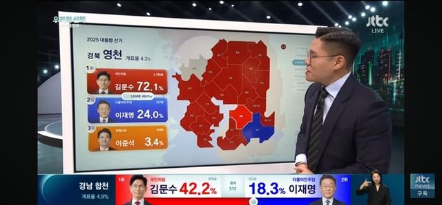 제21대 대통령 선거 개표가 속속 진행되고 있는 가운데 일부 지역 득표율이 눈길을 끈다.