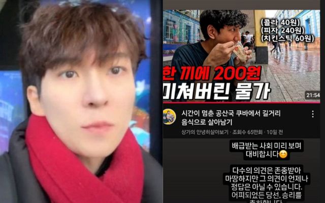차강석은 자신의 계정에 한 채널 영상의 썸네일을 캡처해 올렸다. 해당 영상은 ‘시간이 멈춘 공산국 쿠바에서 길거리 음식으로 살아남기’라는 제목으로 쿠바 내 현실적인 경제 상황을 조명하고 있다. 썸네일에는 “콜라 40원, 피자 240원, 치킨스틱 60원”이라는 문구와 함께 “한 끼에 200원, 미쳐버린 물가”라는 자극적인 문장이 더해져 있다.