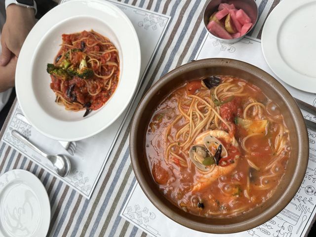 이 레스토랑에서는 다양한 파스타를 맛볼 수 있습니다. 토마토, 오일, 크림 베이스 등 여러 가지 선택지가 있어, 원하는 맛을 고를 수 있는데요. 해산물이 듬뿍 들어간 파스타나 맵고 짭조름한 풍미의 요리까지 다양하게 준비되어 있어 정말 다채로운 맛을 경험할 수 있습니다.