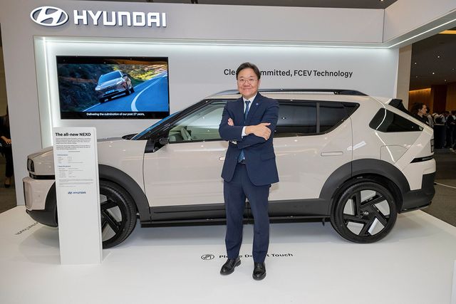 김창환 현대차·기아 전동화에너지솔루션담당 부사장이 신형 넥쏘 앞에서 기념 사진을 촬영하고 있다. / 현대자동차그룹