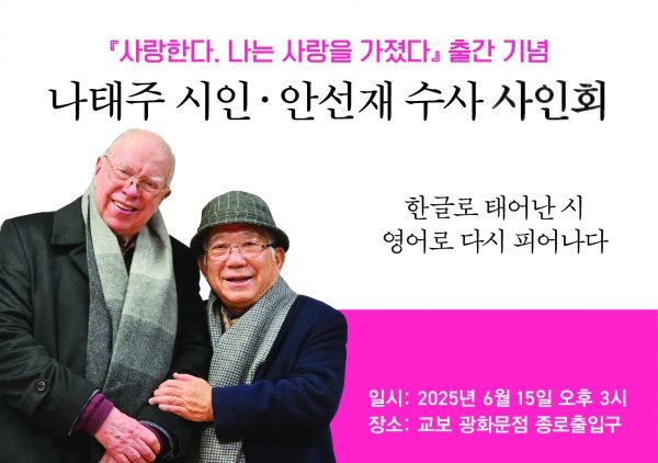 한국인이 가장 사랑하는 시인 중 한 명인 나태주 시인이 한국 현대시 번역의 선구자 안선재 수사와 함께 첫 공동 사인회를 연다.