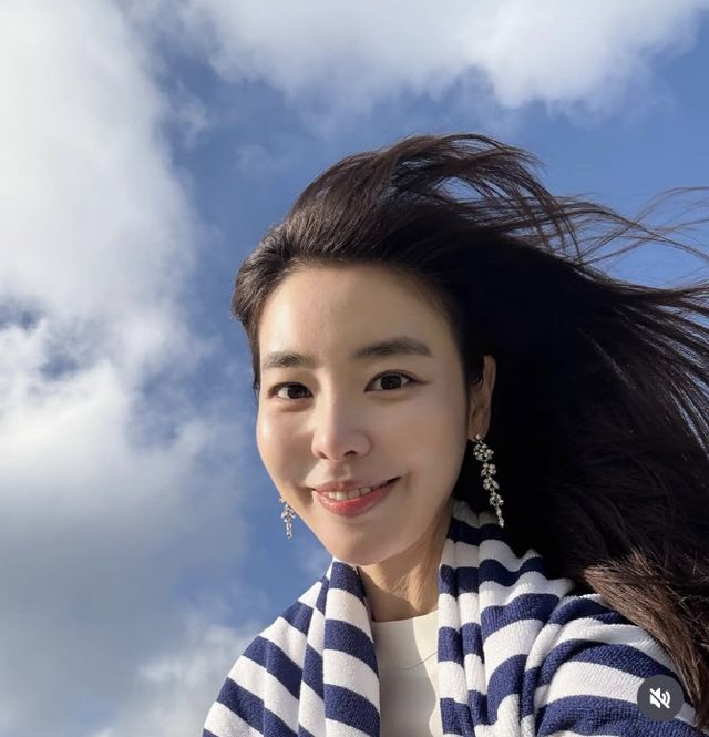 함께 올린 사진 속 김규리는 파란 하늘 아래에서 파란 카디건을 걸치고 있다.