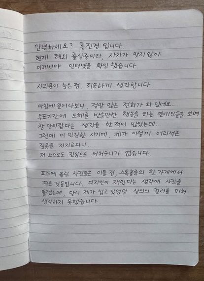 미처 상의의 색을 생각하지 못했다고 해명한 홍진경은 "이유를 막론하고 무조건 제가 잘못했다. 입이 열개라도 드릴 말씀이 없고, 명백히 제가 잘못한 일이다"라고 재차 사과했다.