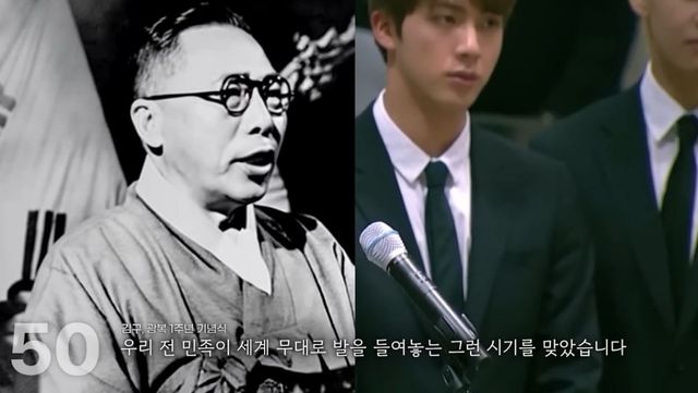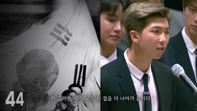 MBC 선거방송 카운트다운 영상 '그날, 함께 지금' 속 모습 2. 김구 선생의 연설이 BTS RM의 UN 연설문과 이어진다. / 유튜브 'MBCNEWS'