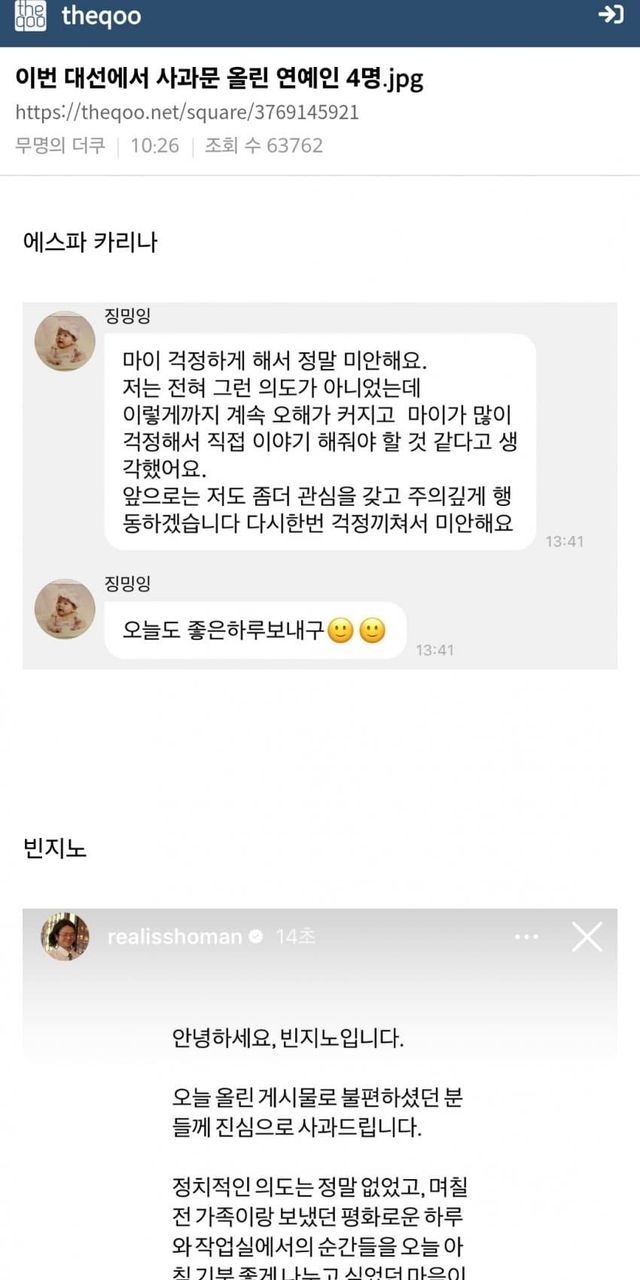 이번 대선에서 사과문 올린 연예인 4명.jpg