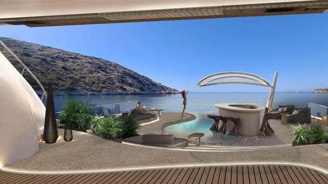 그리스 디자인 스튜디오 AMK 아키텍처 & 디자인은 비치 클럽 공간을 갖춘 슈퍼요트 콘셉트를 공개했는데, 고급 요트 디자인에서 상상할 수 있는 모든 것을 실현했다는 평가를 받는다.
