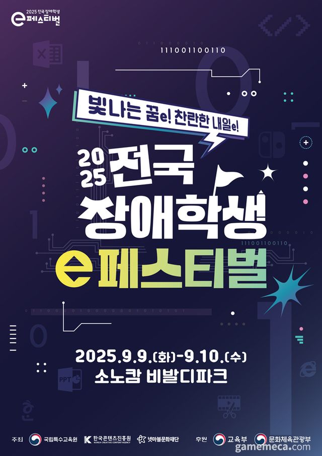 문화체육관광부와 한국콘텐츠진흥원(이하 콘진원)은 국립특수교육원, 넷마블문화재단과 함께 오는 6월 4일부터 7월 11일까지 전국 17개 시도에서 2025년 전국 장애학생 e페스티벌 지역예선을 개최한다.