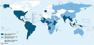 (지도)지카바이러스 전파 국가(영토), 2024. 5월 기준, WHO